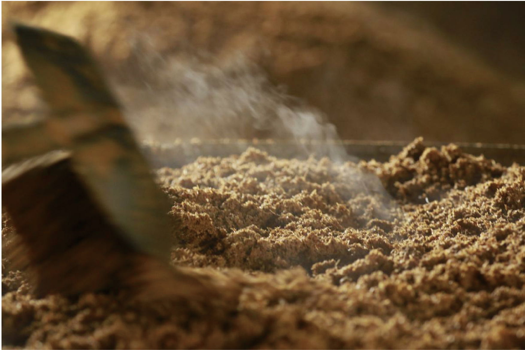 每一瓶好酒的誕生都有它自己的節奏。飽滿的高粱,經過蒸煮、加曲、發酵等一系列工序,那一顆顆高粱仿佛被賦予了生命,在時光的雕琢下,轉化為滿溢著春之韻味的美酒。在那段無聲的時光里,酒曲與高粱相互交融,進行著一場奇妙的化學反應。